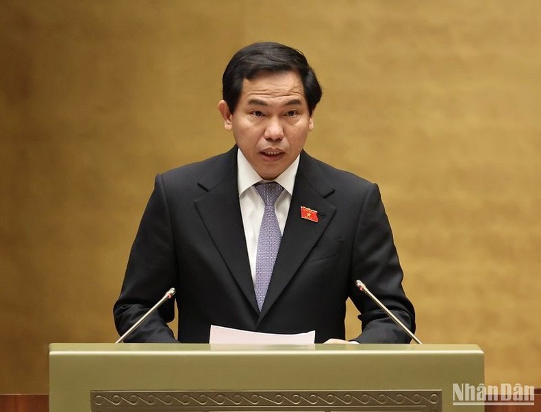Chủ nhiệm Ủy ban Tài chính, Ngân sách của Quốc hội Lê Quang Mạnh báo cáo giải trình, tiếp thu, chỉnh lý dự thảo Luật trước khi Quốc hội bấm nút biểu quyết thông qua. (Ảnh: DUY LINH)