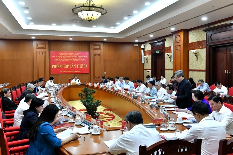 Phiên họp lần thứ 3 về tổng kết việc thực hiện Nghị quyết số 18-NQ/TW. (Ảnh: ĐĂNG KHOA)