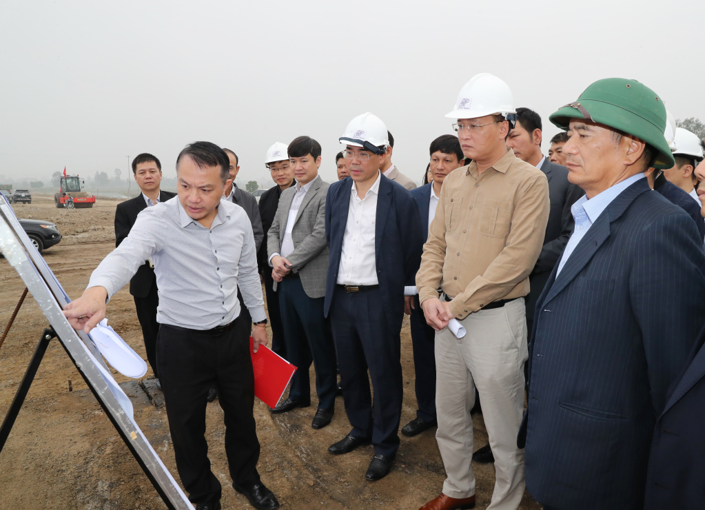 Bí thư Tỉnh ủy Nguyễn Hữu Nghĩa kiểm tra thực địa dự án đường kết nối ĐT.387 với đường cao tốc Hà Nội - Hải Phòng (Km31+100) địa phận xã Tân Phúc, xã Bãi Sậy (Ân Thi)