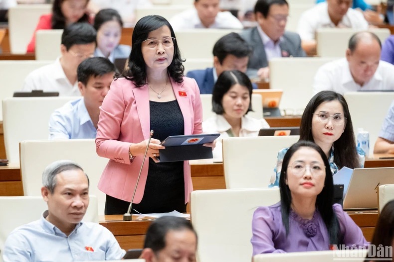 Đại biểu Trần Thị Thu Đông (đoàn Bạc Liêu) phát biểu ý kiến. (Ảnh: ĐĂNG KHOA)