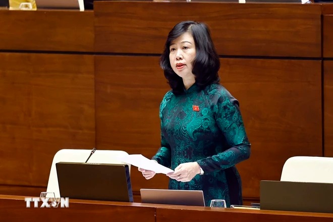 Thống đốc Ngân hàng Nhà nước Việt Nam Nguyễn Thị Hồng trả lời chất vấn. (Ảnh: Phương Hoa/TTXVN)