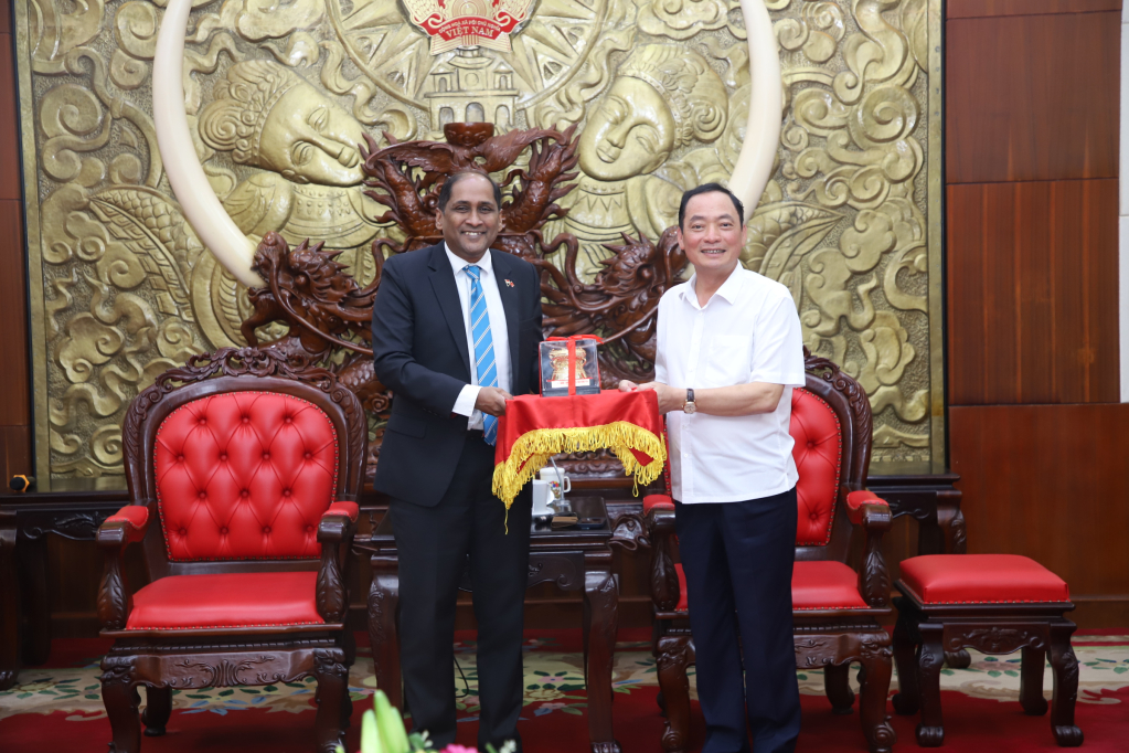 * Cùng ngày, tại trụ sở HĐND - UBND tỉnh, đồng chí Trần Quốc Văn, Phó Bí thư Tỉnh uỷ, Chủ tịch UBND tỉnh tiếp và làm việc với ngài Jaya Ratnam, Đại sứ đặc mệnh toàn quyền nước Cộng hòa Singapore tại Việt Nam.