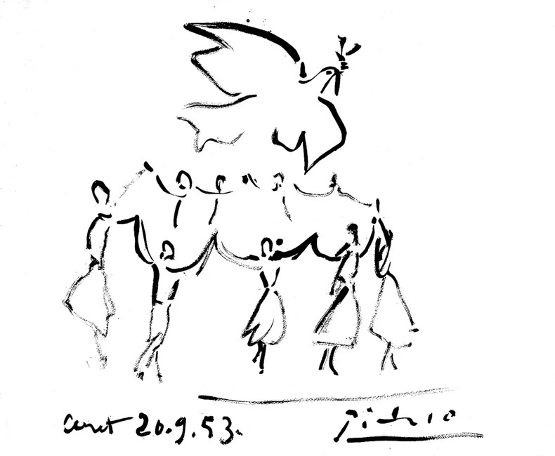 Với Picasso, những bức tranh chim bồ câu chính là bản tự sự về cuộc đời và những cảm xúc về hòa bình, rồi trở thành biểu tượng của hòa bình, của khát vọng hòa bình. Hình ảnh chim bồ câu ngậm cành ô liu đang bay của Picasso được sử dụng ở Đại hội thế giới vì hòa bình ở Paris năm 1949, rồi sau đó được trao Giải thưởng quốc tế vì hòa bình năm 1955.