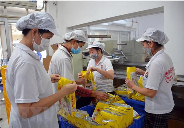 Đóng gói sản phẩm bánh pía. (Ảnh: Tuấn Phi/TTXVN)