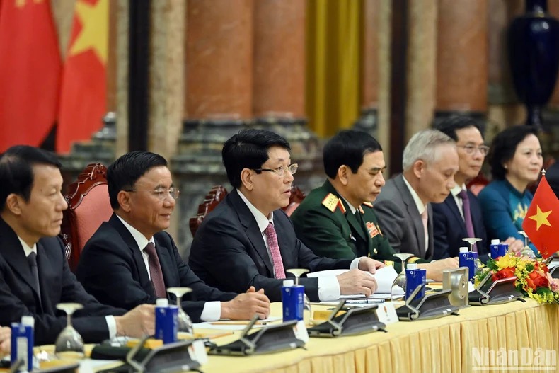 Đánh giá cao kết quả phong phú và những nhận thức chung quan trọng đạt được tại các cuộc hội đàm, hội kiến giữa Tổng Bí thư, Chủ tịch Trung Quốc Tập Cận Bình và các đồng chí lãnh đạo chủ chốt Việt Nam, Chủ tịch nước Lương Cường nêu một số đề nghị và phương hướng lớn trong hợp tác giữa hai nước thời gian tới: