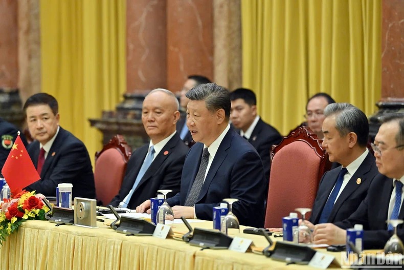 Tổng Bí thư, Chủ tịch Trung Quốc Tập Cận Bình chân thành cảm ơn sự đón tiếp trọng thị, chu đáo, thân thiết, thắm tình hữu nghị “đồng chí, anh em” của Đảng, Nhà nước và nhân dân Việt Nam dành cho Đoàn đại biểu cấp cao Đảng, Nhà nước Trung Quốc.