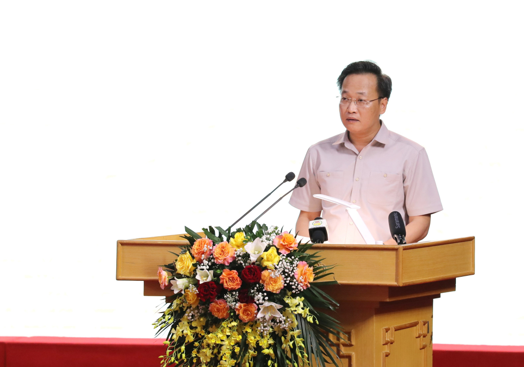 Bí thư Tỉnh uỷ Nguyễn Hữu Nghĩa phát biểu tại buổi gặp mặt
