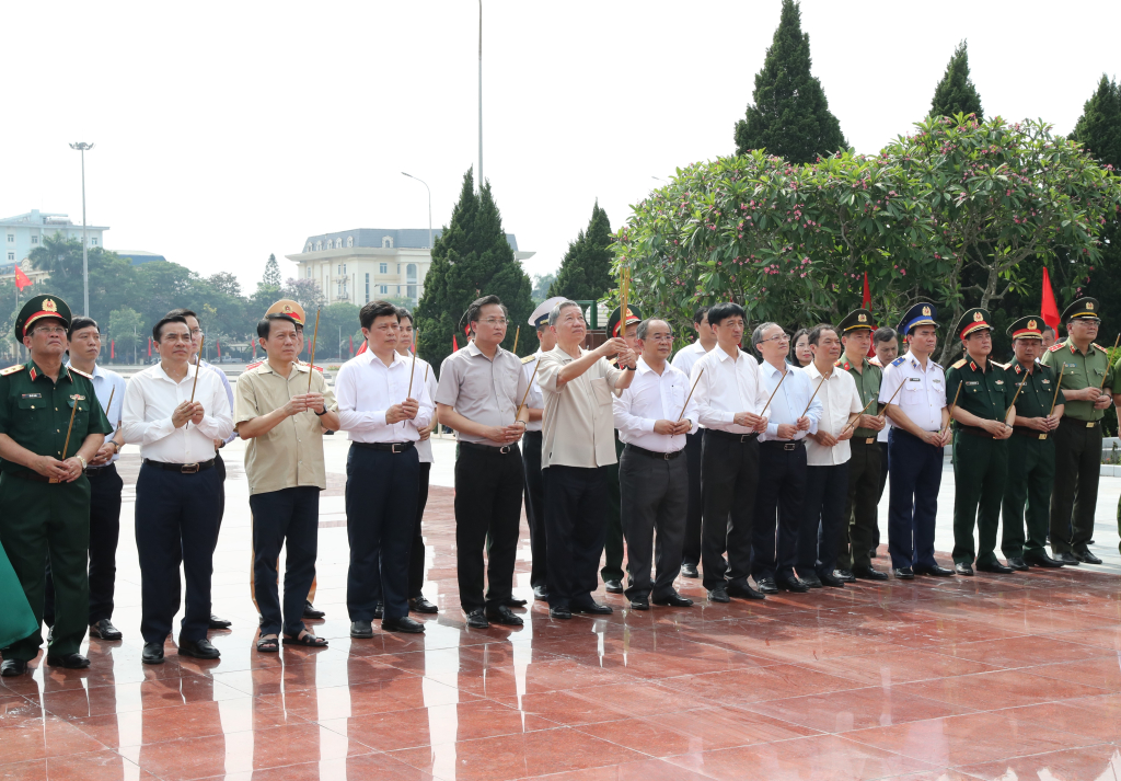 Chủ tịch nước Tô Lâm và các đại biểu dâng hương tại Đài tưởng niệm các anh hùng liệt sĩ tỉnh