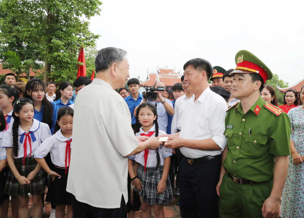 Chủ tịch nước Tô Lâm trao quà tặng Quỹ khuyến học xã Dạ Trạch (Khoái Châu)