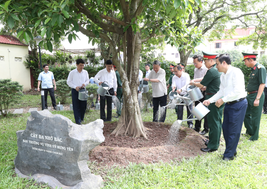 Chủ tịch nước Tô Lâm và các đại biểu chăm sóc “Cây đa nhớ Bác” tại Nhà lưu niệm Bác Hồ