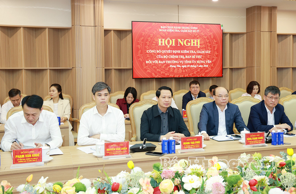 Sáng ngày 3/3, tại trụ sở Tỉnh ủy, đồng chí Đại tướng Lương Tam Quang, Ủy viên Bộ Chính trị, Bộ trưởng Bộ Công an, Trưởng đoàn kiểm tra, giám sát số 17 của Bộ Chính trị, Ban Bí thư chủ trì hội nghị công bố quyết định kiểm tra, giám sát của Bộ Chính trị đối với Ban Thường vụ Tỉnh ủy Hưng Yên. Dự hội nghị có các đồng chí: Thượng tướng Phạm Thế Tùng, Ủy viên Ban Chấp hành Trung ương Đảng, Thứ trưởng Bộ Công an, Phó Trưởng đoàn kiểm tra, giám sát; Trần Văn Phúc, Ủy viên Ủy ban Kiểm tra Trung ương, Phó Trưởng đoàn kiểm tra, giám sát; các thành viên Đoàn kiểm tra, giám sát.