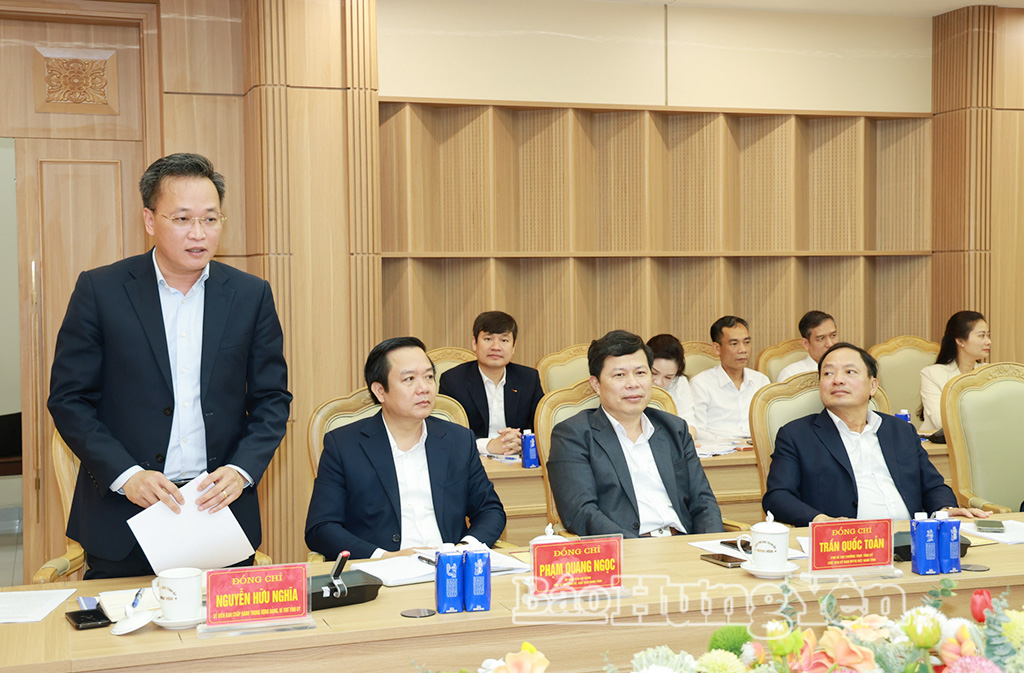 Đồng chí Nguyễn Hữu Nghĩa, Ủy viên Ban Chấp hành Trung ương Đảng, Bí thư Tỉnh ủy phát biểu tại hội nghị.