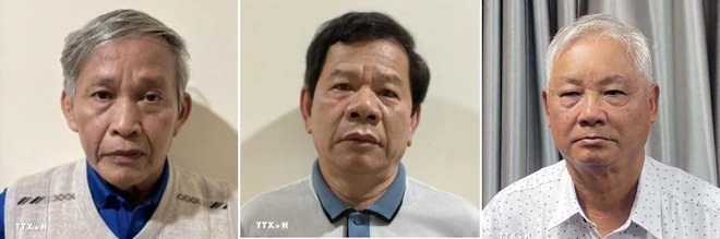 Từ trái qua phải: Ông Cao Khoa, ông Đặng Văn Minh và ông Phạm Đình Cự. (Nguồn: TTXVN phát)