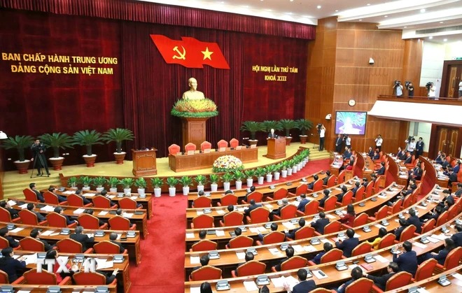 Toàn cảnh phiên bế mạc Hội nghị Trung ương 8 Khóa XIII. (Ảnh: TTXVN)
