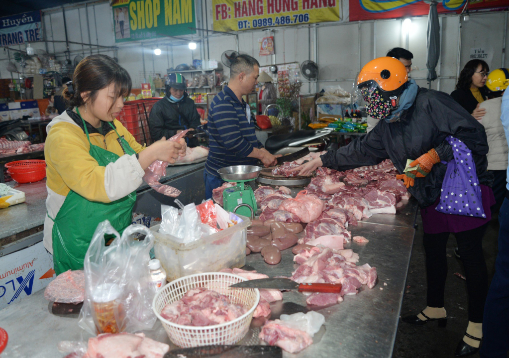 Tại chợ Bao bì (thị xã Mỹ Hào) ngày mùng 4 tháng Giêng, giá bán các loại rau xanh tương đương hoặc giảm nhẹ so với thời điểm trước Tết. Cụ thể, bắp cải 8 – 10 nghìn đồng/cây, su hào 5 nghìn đồng/củ, rau cần 8 – 12 nghìn đồng/kg… Giá bán các mặt hàng thịt gia súc, gia cầm, thủy sản tương đương hoặc tăng 5 – 10 nghìn đồng/kg so với thời điểm trước Tết. Theo đó, cá trôi 50 nghìn đồng/kg, trắm đen 110 nghìn đồng/kg, cua 200 nghìn đồng/kg, móng giò 75 nghìn đồng/kg, thịt bò 260 – 290 nghìn đồng/kg. Tại chợ Gạo (thành phố Hưng Yên), mặt hàng trái cây, hoa tươi cũng có giá bán ổn định, dưa hấu 25 nghìn đồng/kg, quýt 60 – 70 nghìn đồng/kg, cam đường canh 80 – 100 nghìn đồng/kg, hoa cúc các loại 6 – 8 nghìn đồng/bông, lay ơn 10 – 12 nghìn đồng/cành, hoa hồng 8 nghìn đồng/cành…