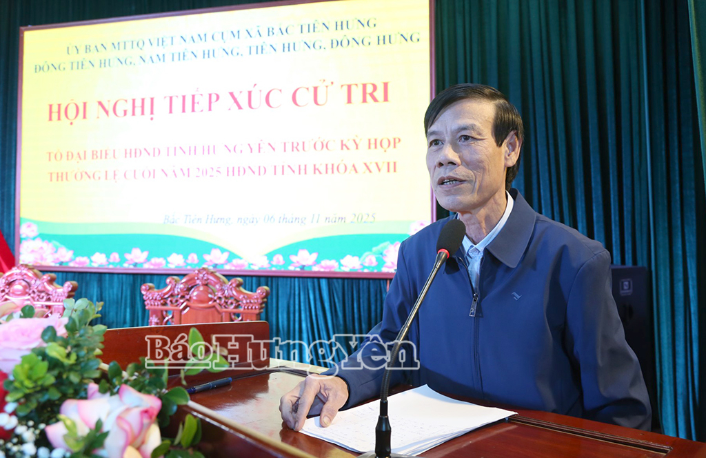 * Tại xã Bắc Tiên Hưng, Tổ đại biểu số 15 HĐND tỉnh tiếp xúc cử tri các xã: Đông Hưng, Tiên Hưng, Bắc Tiên Hưng, Đông Tiên Hưng, Nam Tiên Hưng trước kỳ họp thường lệ HĐND tỉnh cuối năm 2025.