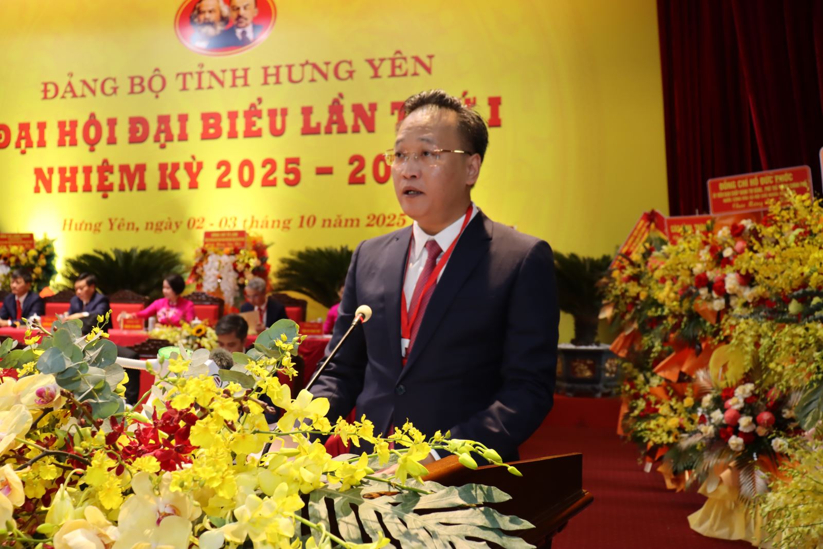 Phát biểu chỉ đạo, định hướng những nhiệm vụ trọng tâm của Đảng bộ trong nhiệm kỳ 2025-2030, đồng chí Nguyễn Duy Ngọc, Ủy viên Bộ Chính trị, Bí thư Trung ương Đảng, Chủ nhiệm Ủy ban Kiểm tra Trung ương đã thay mặt Bộ Chính trị, Ban Bí thư Trung ương biểu dương những thành quả mà tỉnh Hưng Yên đạt được trong nhiệm kỳ 2020 - 2025; chỉ ra những hạn chế, khuyết điểm; đồng thời định hướng, gợi mở một số vấn đề để tỉnh Hưng Yên phát triển bứt phá trong nhiệm kỳ 2025 - 2030, như: Tiếp tục nghiên cứu rà soát các chỉ tiêu, nhiệm của Trung ương để cụ thể hóa triển khai thực hiện phù hợp với tình hình thực tế của tỉnh; tập trung chuyển đổi mô hình phát triển, nhất là phát triển kinh tế nhanh, bền vững dựa trên khoa học - công nghệ, đổi mới sáng tạo và chuyển đổi số; xây dựng và phát triển văn hóa - xã hội toàn diện, khơi dậy sức mạnh con người và truyền thống văn hoá, văn hiến, yêu nước và cách mạng của quê hương Hưng Yên; tăng cường quốc phòng, an ninh, bảo đảm môi trường ổn định để phát triển; xây dựng Đảng và hệ thống chính trị trong sạch, vững mạnh toàn diện; tăng cường xây dựng khối đại đoàn kết toàn dân, củng cố sự gắn bó, đồng thuận trong Nhân dân. Đồng chí tin tưởng Đảng bộ, chính quyền và Nhân dân tỉnh Hưng Yên sẽ hoàn thành thắng lợi mục tiêu, nhiệm vụ mà Đại hội đề ra trong nhiệm kỳ tới.