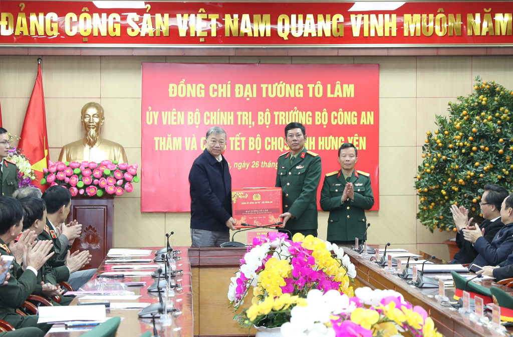 Nhân dịp Tết Nguyên đán Giáp Thìn 2024, ngày 26/1, Đoàn công tác của Trung ương do Đại tướng Tô Lâm, Ủy viên Bộ Chính trị, Bộ trưởng Bộ Công an làm trưởng đoàn đến thăm, tặng quà Tết Công an tỉnh và Bộ chỉ huy quân sự (CHQS) tỉnh. Cùng đi có các đồng chí: Đỗ Tiến Sỹ, Ủy viên BCH Trung ương Đảng; Tổng Giám đốc Đài Tiếng nói Việt Nam; Nguyễn Xuân Hùng, Phó Chủ tịch Tổng Liên đoàn Lao động Việt Nam.