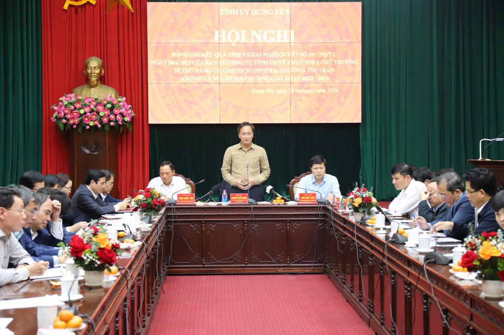 Ngày 16/2, Thường trực Tỉnh ủy tổ chức hội nghị đánh giá kết quả triển khai Nghị quyết số 39-NQ/TU, ngày 30/6/2023 của Ban Thường vụ Tỉnh ủy về thực hiện chủ trương Bí thư Đảng ủy, Chủ tịch UBND xã, phường, thị trấn không là người địa phương giai đoạn 2023 – 2025 và 2025 – 2030 (Nghị quyết số 39).