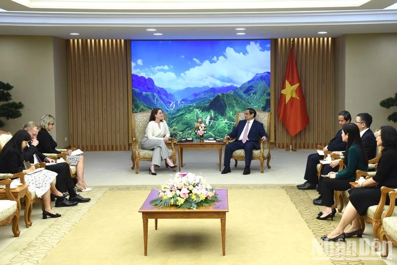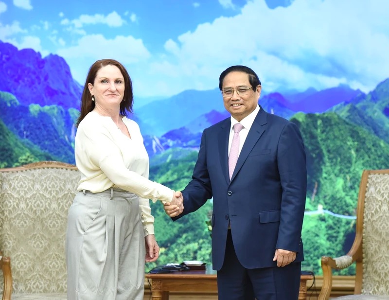 Thủ tướng Phạm Minh Chính và Đại sứ New Zealand tại Việt Nam Caroline Beresford (Ảnh: Trần Hải).