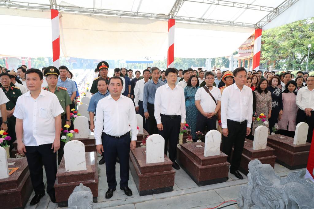 Thắp nén hương thơm lên Đài tưởng niệm các Anh hùng liệt sĩ và từng phần mộ liệt sĩ là người con quê hương Hưng Yên, Hải Dương, các thành viên trong đoàn cán bộ hai tỉnh bày tỏ: Đảng bộ, chính quyền và Nhân dân hai tỉnh Hưng Yên và Hải Dương đời đời ghi nhớ công lao, sự hy sinh cao cả của các anh hùng liệt sĩ đã hiến dâng xương máu, dành trọn tuổi thanh xuân cho độc lập tự do của Tổ quốc. Để xứng đáng với sự hy sinh cao cả ấy, Đảng bộ, chính quyền và Nhân dân hai tỉnh nguyện tiếp tục phát huy tinh thần đoàn kết thống nhất, nỗ lực khắc phục khó khăn, đẩy mạnh phát triển kinh tế-xã hội, nâng cao đời sống cho Nhân dân, xây dựng hệ thống chính trị vững mạnh, đồng thời, tiếp tục thực hiện tốt công tác chăm lo cho các gia đình chính sách, người có công. Qua đó, góp phần xây dựng quê hương, đất nước ngày càng phát triển, giàu mạnh.