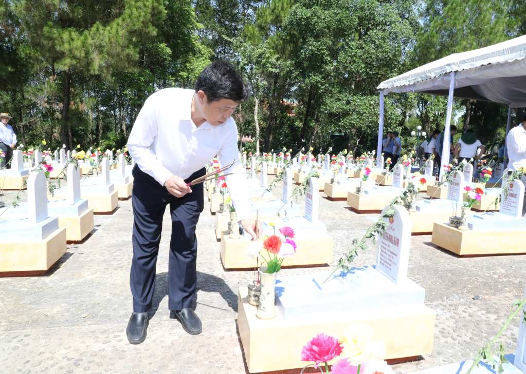 Đồng chí Bí thư Tỉnh ủy Nguyễn Hữu Nghĩa thắp hương tại khu mộ liệt sĩ Hưng Yên