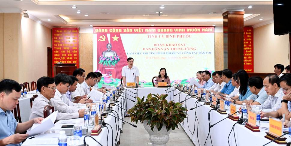 Sáng ngày 13/11, tại Hội trường Tỉnh ủy Bình Phước, Đoàn khảo sát của Ban Dân vận Trung ương do đồng chí Triệu Tài Vinh, Phó Trưởng Ban Dân vận Trung ương, Trưởng đoàn đã làm việc với tỉnh Bình Phước về công tác dân tộc trong tình hình mới.