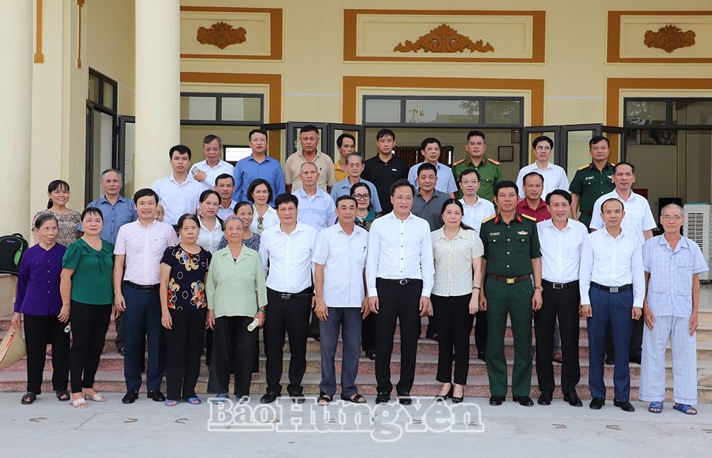 Đồng chí Bí thư Tỉnh ủy Nguyễn Hữu Nghĩa và các đại biểu chụp ảnh lưu niệm với đảng viên Chi bộ thôn Phúc Tá