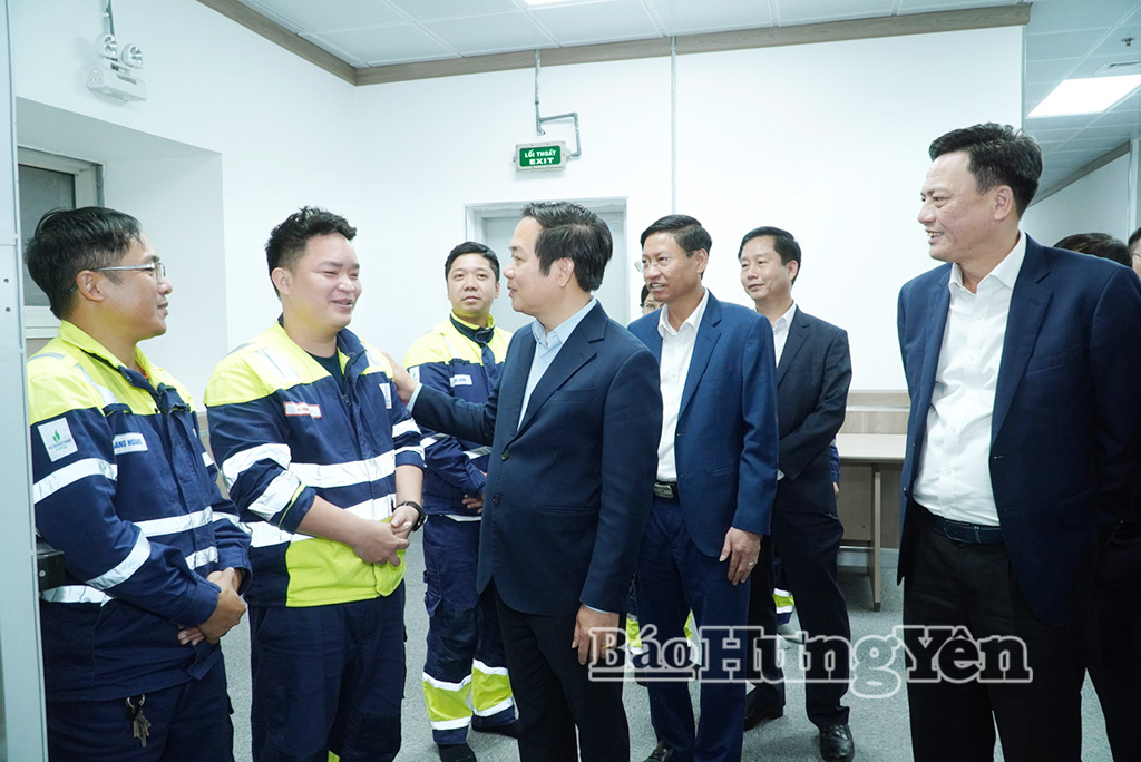 Đồng chí Chủ tịch UBND tỉnh Phạm Quang Ngọc cùng các đồng chí lãnh đạo tỉnh thăm hỏi, động viên cán bộ, công nhân Nhà máy Nhiệt điện Thái Bình 2 đang trực vận hành sản xuất.