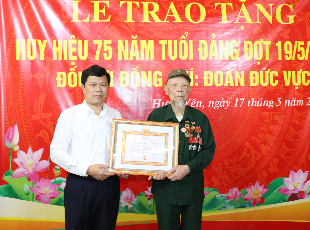 trao Huy hiệu 75 năm tuổi Đảng tặng đảng viên Đoàn Đức Vực