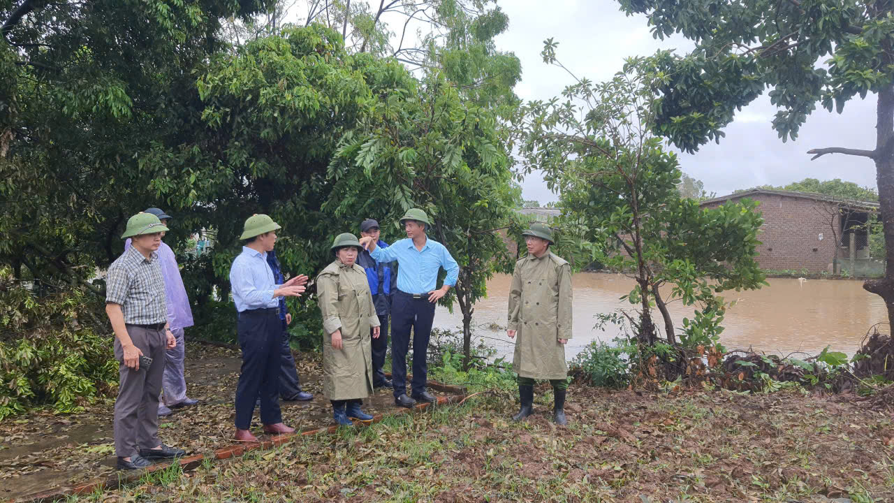 Đồng chí Đào Hồng Vận, Ủy viên Ban Thường vụ Tỉnh ủy, Trưởng Ban Tuyên giáo Tỉnh ủy, Trưởng Đoàn Đại biểu Quốc hội tỉnh đi kiểm tra công tác khắc phục hậu quả sau cơn bão số 3 và hỗ trợ Nhân dân khi mực nước sông Luộc lên cao