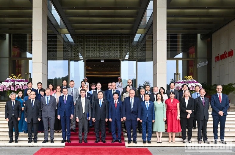 Chủ tịch Quốc hội Trần Thanh Mẫn với các Đại sứ EU và Đại sứ, Đại biện các nước thành viên EU. (Ảnh: Duy Linh)