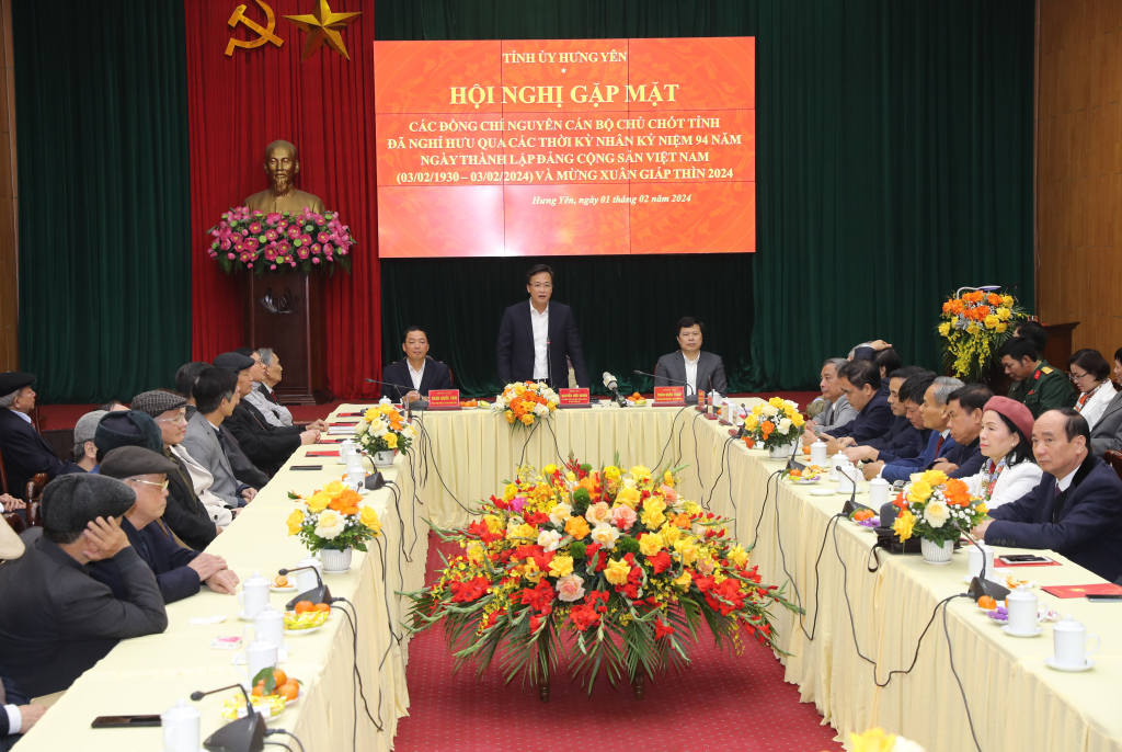 Nhân dịp năm mới Xuân Giáp Thìn 2024, đồng chí Bí thư Tỉnh ủy và các đồng chí trong Thường trực Tỉnh ủy chúc các đồng chí nguyên cán bộ chủ chốt tỉnh đã nghỉ hưu qua các thời kỳ luôn mạnh khỏe, tiếp tục tham gia đóng góp trí tuệ giúp tỉnh thực hiện thành công các mục tiêu, nhiệm vụ đã đề ra, góp phần xây dựng tỉnh Hưng Yên ngày càng giàu mạnh.