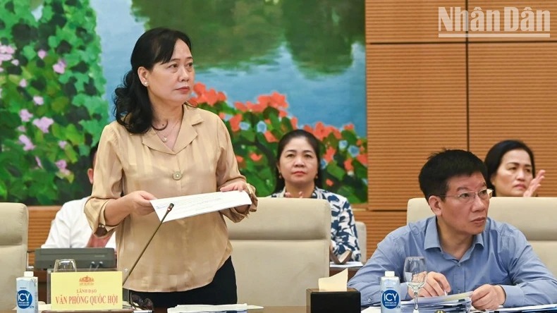 Phó Tổng Thư ký, Phó Chủ nhiệm Văn phòng Quốc hội Nguyễn Thị Thúy Ngần trình bày báo cáo tóm tắt. (Ảnh Duy Linh)