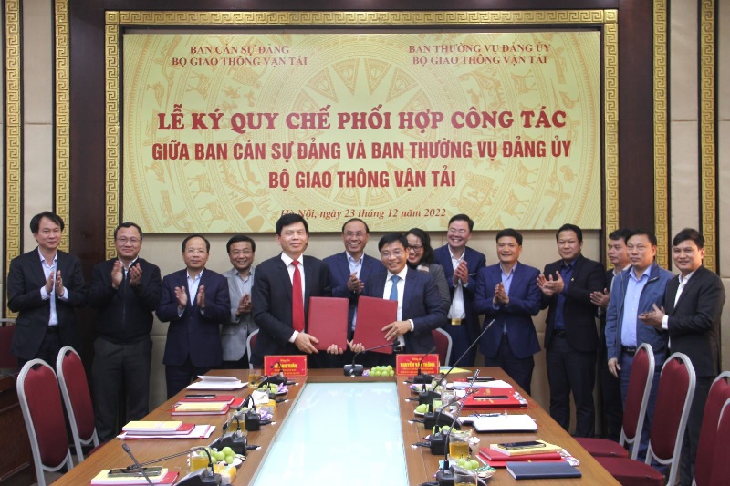 Ban Cán sự đảng Bộ Giao thông vận tải và Ban Thường vụ Đảng ủy Bộ Giao thông vận tải ký quy chế phối hợp công tác_Ảnh: mt.gov.vn