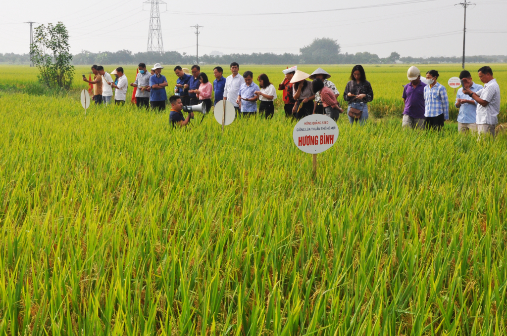 Qua đánh giá mô hình, giống lúa thuần Hương Bình có năng suất thực thu dự kiến đạt 68 tạ/héc-ta, cao hơn khoảng 10 tạ/héc-ta so với giống lúa Bắc thơm số 7 (58 tạ/héc-ta). Giống lúa thuần Hương Bình có giá giống, mức độ đầu tư (phân đạm, kali) cao hơn so với giống đối chứng. Tuy nhiên, chi phí phòng trừ sâu bệnh thấp hơn so với giống lúa Bắc thơm số 7, hiệu quả kinh tế cao hơn so với giống đối chứng khoảng 228.000 đồng/sào.