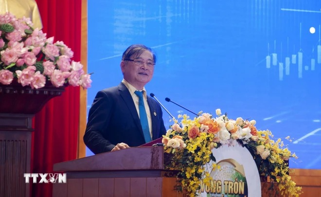 Ông Phan Xuân Dũng, Chủ tịch Liên hiệp các Hội Khoa học và Kỹ thuật Việt Nam (VUSTA) phát biểu tại Hội nghị. (Ảnh: TTXVN phát)