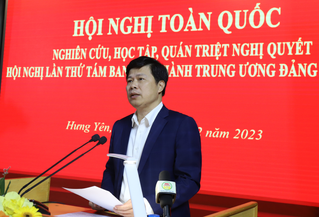 Phát biểu kết luận hội nghị, đồng chí Trần Quốc Toản, Phó Bí thư Thường trực Tỉnh ủy, Chủ tịch HĐND tỉnh nhấn mạnh 4 nghị quyết quan trọng tại Hội nghị Trung ương 8 khóa XIII đã được Bộ Chính trị, Ban Bí thư quán triệt tại hội nghị gồm Nghị quyết số 42, Nghị quyết số 43, Nghị quyết số 44 và Nghị quyết số 45. Thay mặt Ban Thường vụ Tỉnh ủy, đồng chí Phó Bí thư Thường trực Tỉnh ủy, Chủ tịch HĐND tỉnh Trần Quốc Toản đề nghị ngay sau hội nghị này, các cấp ủy, các tổ chức đảng, cơ quan, đơn vị, địa phương nghiêm túc tổ chức quán triệt đến cán bộ, đảng viên, hội viên, đoàn viên, người lao động nghiên cứu và học tập; việc triển khai cần tổ chức bài bản, khoa học, chất lượng. Các huyện ủy, thị ủy, thành ủy, đảng ủy trực thuộc Tỉnh ủy; ban cán sự đảng, đảng đoàn, Ủy ban MTTQ và tổ chức chính trị - xã hội cấp tỉnh xây dựng chương trình hành động, kế hoạch thực hiện Nghị quyết cụ thể, có lộ trình gắn với chức năng, nhiệm vụ và điều kiện thực tế của địa phương, cơ quan, đơn vị… nhằm sớm đưa các Nghị quyết Hội nghị Trung ương 8 khóa XIII vào cuộc sống. Đồng thời đề nghị Ban Cán sự Đảng UBND tỉnh, các cơ quan tham mưu, giúp việc của Tỉnh ủy theo chức năng, nhiệm vụ được giao, hướng dẫn, kiểm tra, giám sát, theo dõi, đôn đốc việc tổ chức triển khai thực hiện Nghị quyết trong toàn Đảng bộ tỉnh...
