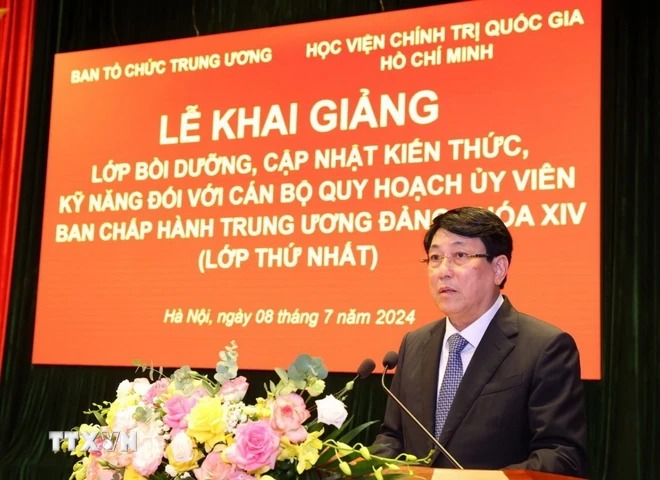 Sáng 8/7, tại Hà Nội, Học viện Chính trị Quốc gia Hồ Chí Minh phối hợp với Ban Tổ chức Trung ương tổ chức khai giảng Lớp bồi dưỡng, cập nhật kiến thức, kỹ năng cho cán bộ quy hoạch Ủy viên Ban Chấp hành Trung ương Đảng khóa XIV (lớp thứ nhất).