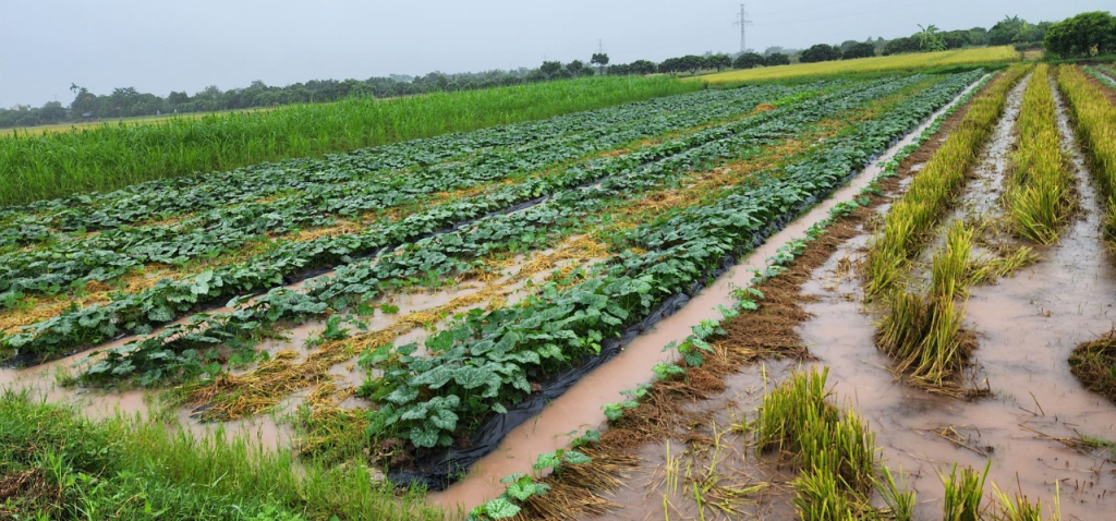 Theo ghi nhận của các địa phương, một số diện tích rau màu nước ngập ngang mặt luống; một số cây rau màu mới trồng, cây non bị dập nát, thối rễ…