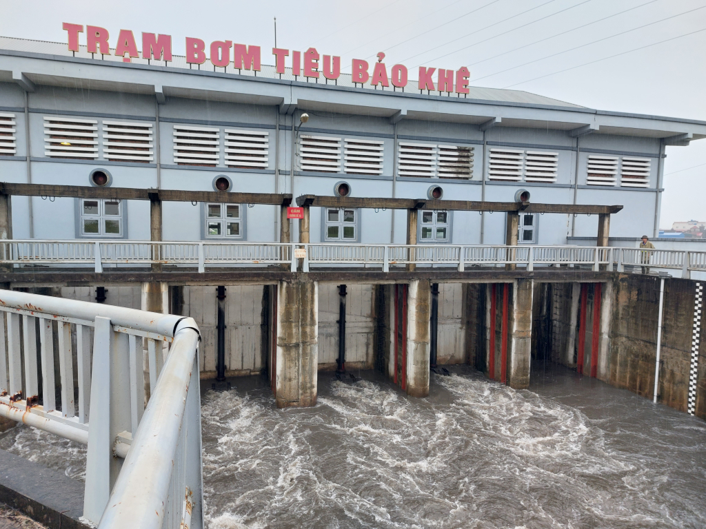Trạm bơm tiêu Bảo Khê (thành phố Hưng Yên) vận hành chống úng