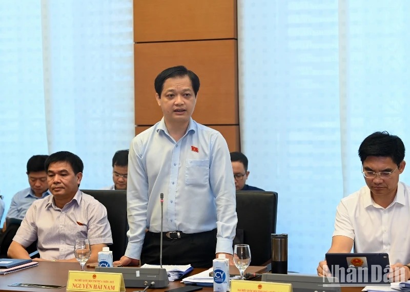 Đại biểu Nguyễn Hải Nam (Thừa Thiên Huế) phát biểu tại buổi họp tổ. (Ảnh: DUY LINH)