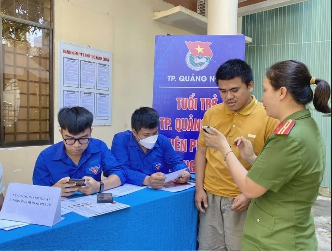 Đoàn thanh niên Quảng Ngãi tổ chức các đợt ra quân tuyên truyền và hỗ trợ người dân cài đặt, kích hoạt định danh điện tử. (Ảnh: ĐInh Hương/TTXVN)