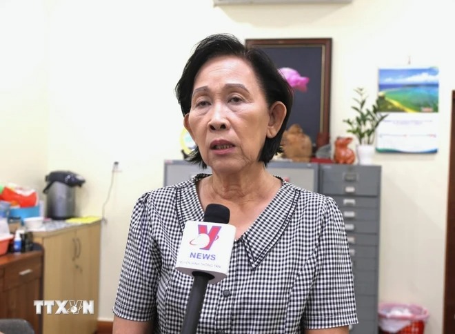 Bà Phạm Thanh Thủy, Phó Chủ tịch Hội Khmer-Việt Nam tại Campuchia, bày tỏ tình cảm kính trọng và tiếc thương vô hạn của cộng đồng người gốc Việt tại Campuchia đối với Tổng Bí thư Nguyễn Phú Trọng. (Ảnh: Hoàng Minh/TTXVN)