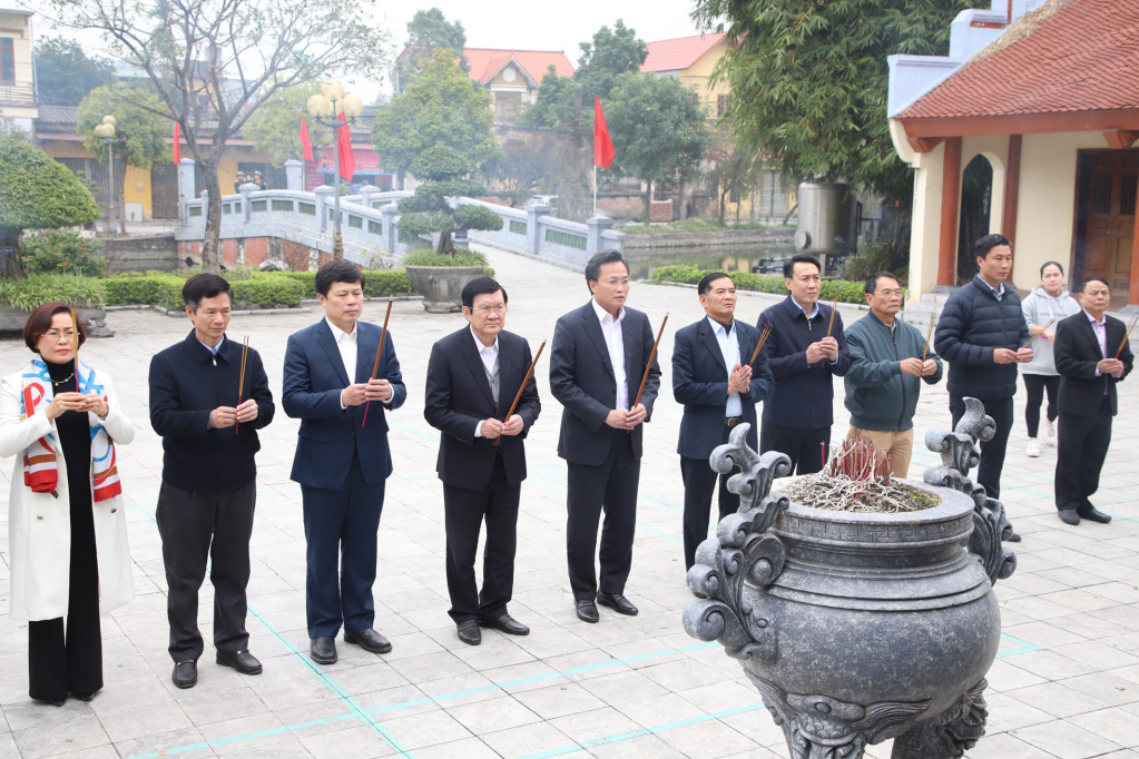 Đồng chí Trương Tấn Sang, nguyên Ủy viên Bộ Chính trị, nguyên Chủ tịch nước cùng các đồng chí lãnh đạo tỉnh dâng hương tại Nhà lưu niệm Chủ tịch Hồ Chí Minh (thành phố Hưng Yên); dâng hương tại khu mộ thân phụ, thân mẫu của Tổng Bí thư Nguyễn Văn Linh (xã Giai Phạm, Yên Mỹ); dâng hương tại Nhà lưu niệm Tổng Bí thư Nguyễn Văn Linh và Nhà lưu niệm Trung tướng Nguyễn Bình (xã Giai Phạm, Yên Mỹ).