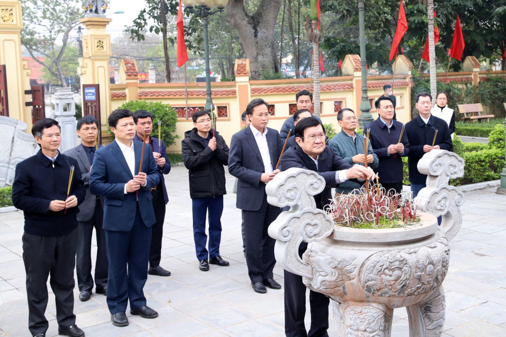 Nguyên Chủ tịch nước Trương Tấn Sang và các đại biểu dâng hương tại Nhà lưu niệm