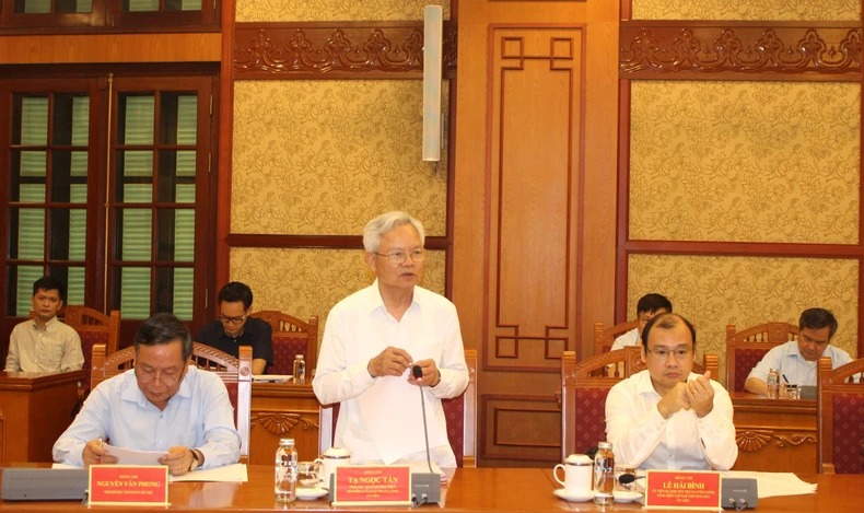 Đồng chí Tạ Ngọc Tấn báo cáo tình hình triển khai nhiệm vụ tổng kết 40 năm đổi mới.