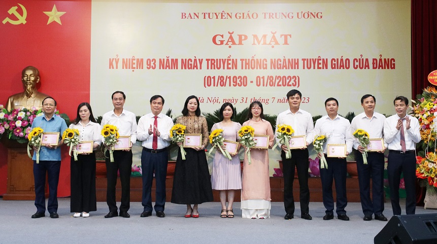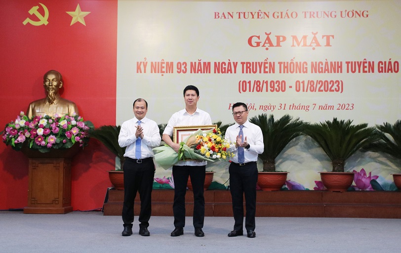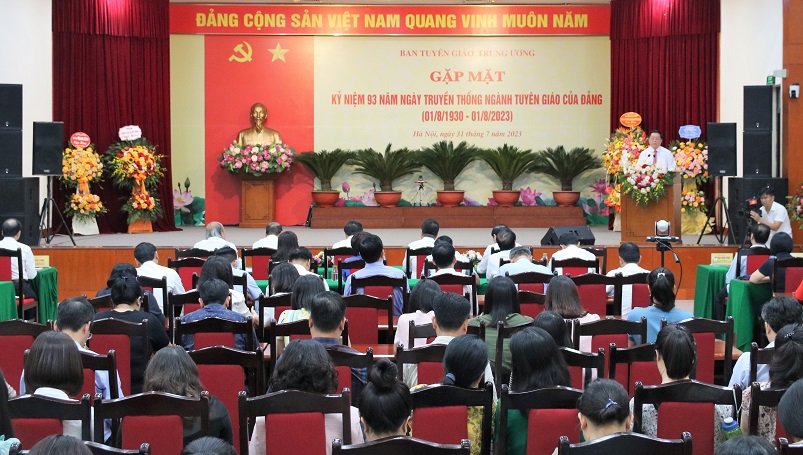 Sáng 31/7, tại Hà Nội, Ban Tuyên giáo Trung ương đã tổ chức Gặp mặt Kỷ niệm 93 năm Ngày truyền thống ngành Tuyên giáo của Đảng (1/8/1930 - 1/8/2023). Tham dự buổi gặp mặt có các đồng chí Lãnh đạo Ban, nguyên Lãnh đạo Ban cùng toàn thể cán bộ công chức, viên chức, người lao động trong cơ quan.
