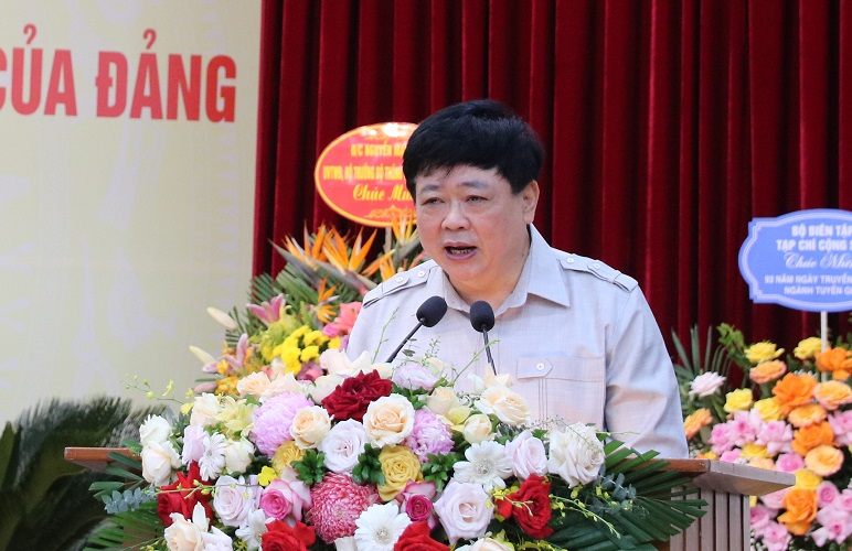 Đồng chí Nguyễn Trọng Nghĩa phát biểu ôn lại truyền thống 93 năm ngành Tuyên giáo của Đảng.