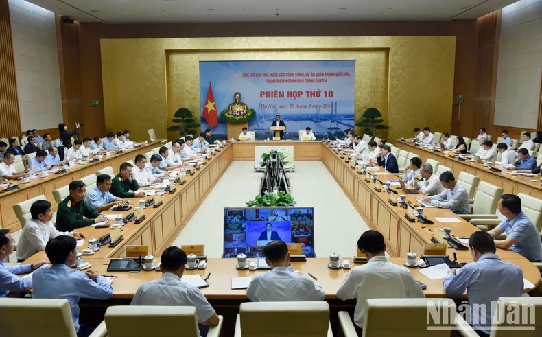 Sáng 29/3, tại Trụ sở Chính phủ, Thủ tướng Phạm Minh Chính - Trưởng Ban Chỉ đạo Nhà nước các công trình, dự quan trọng quốc gia, trọng điểm ngành Giao thông vận tải chủ trì Phiên họp thứ 10 của Ban Chỉ đạo. Cùng dự có Phó Thủ tướng Trần Hồng Hà. Phiên họp được tổ chức theo hình thức trực tiếp tại điểm cầu chính Trụ sở Chính phủ và trực tuyến tới 46 tỉnh, thành phố có các dự án giao thông trọng điểm đi qua.